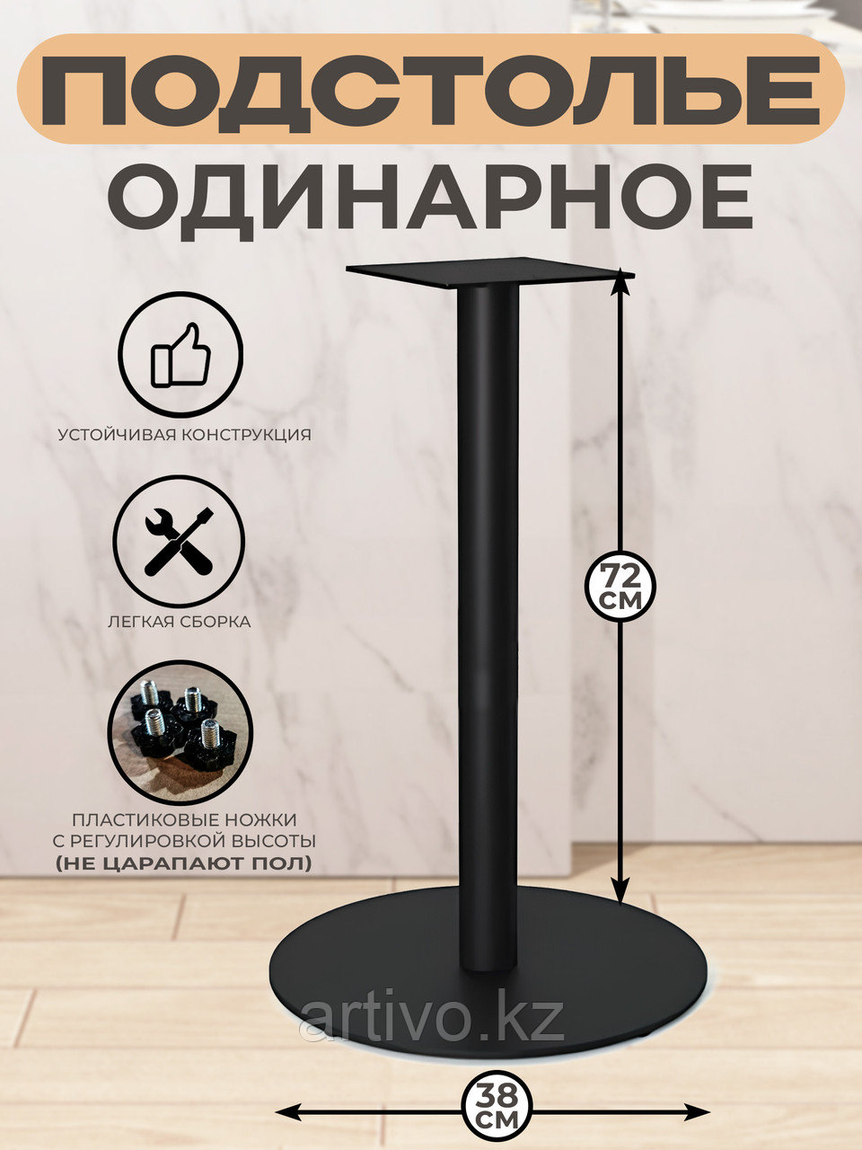 Металлическое подстолье Vega R, разборное, регулировочные ножки защитят ваш пол.