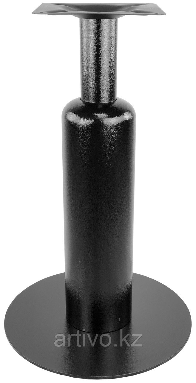 Подстолье металлическое. Труба и основание-черное порошковое покрытие матовое. Основание плоское. Размер трубы (мм): D76, D160. Рекомендуемый размер столешницы: D-80, 80х80.
